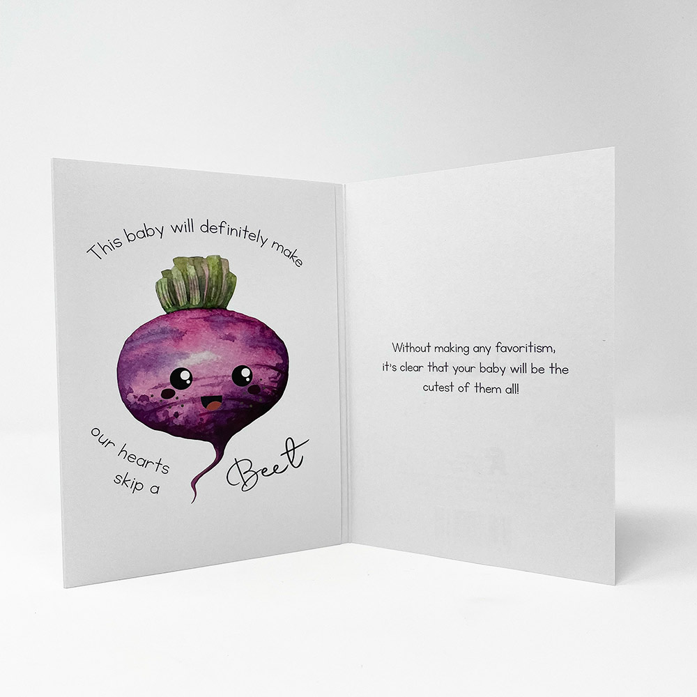 - The perfect greeting card to accompany your gift sets during special events such as gender reveal parties, showers and births.