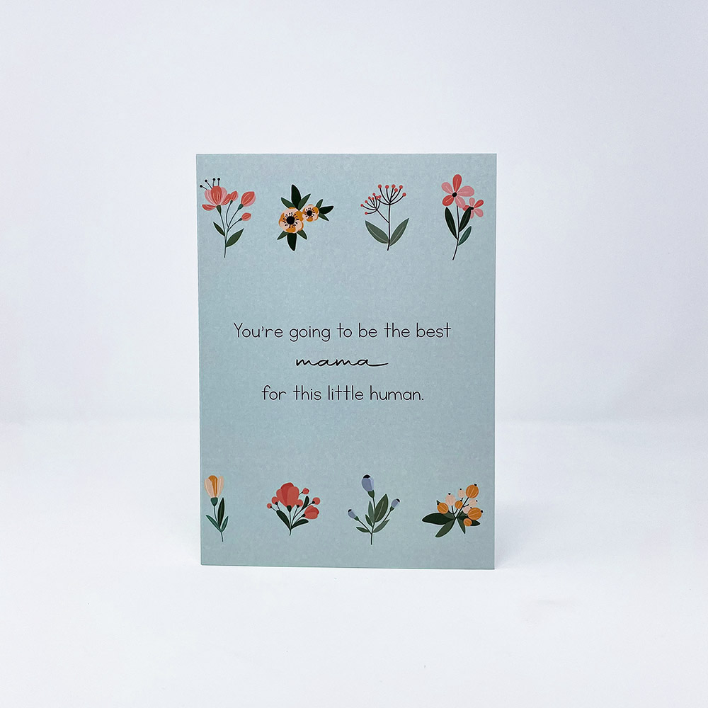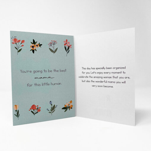 The maternity greeting cards offer a sweet design, modern colors, plus an endearing and cute message to accompany our gift sets.